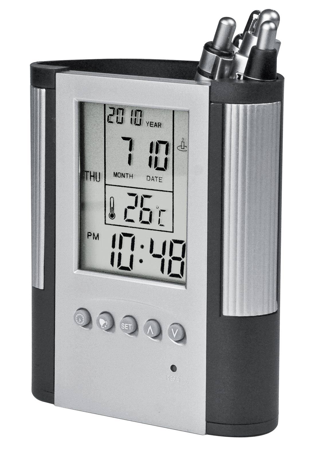 Подставка для ручек с часами "Sevilla", цвет серый/черный, артикул 103103, Польша