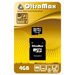 Micro SD 4Gb OltraMax Class 10 с адаптером SD. Предназначен для использования в качестве накопителя в современных мобильных устройствах и фотоаппаратах