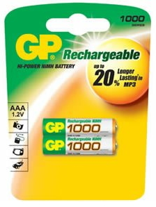 GP АAА 1000 mAh 2BP Аккумулятор (набор из двух штук) Никель-металлгидридные аккумуляторы; AAA x 2 шт., блистер; номинальная емкость 1000mAh