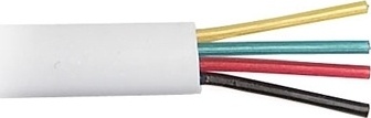 Коммуникационный кабель для передачи телефонного сигнала и данных. Удобство прокладки внутри помещений достигается за счет плоской формы кабеля.