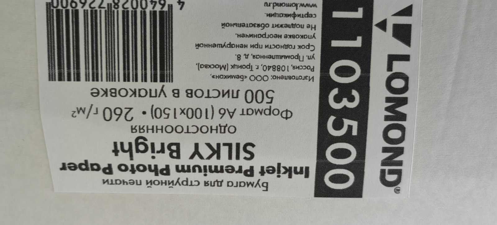 Бумага Lomond шелковисто-матовая 1х260г, 10х15см Silky Bright 1103500