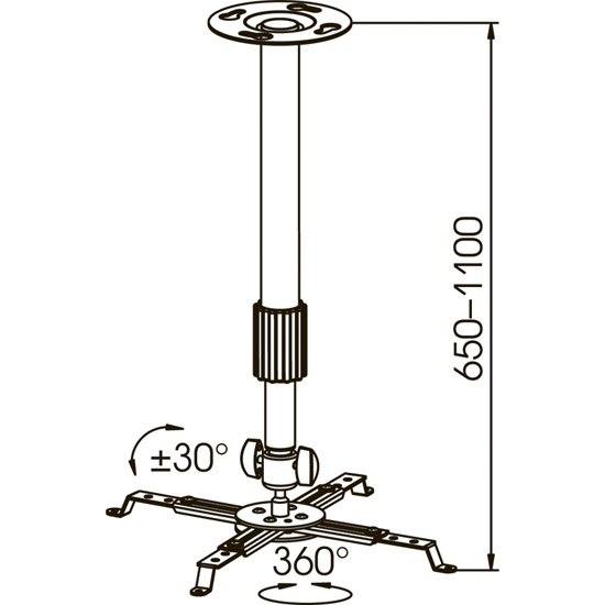 Надежный потолочный кронштейн для видео проекторов с удобной регулировкой наклона и поворота. Регулируемое расстояние от потолка до проектора 650-