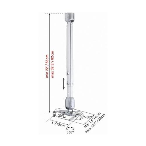 Кронштейн для потолочного крепления LCD проекторов, телевизоров и мониторов Barkan 91.S до 26" (66 см), телескопический, 2 регулировки положения (верх-вниз - поворот 36