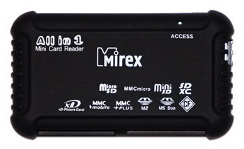 USB-картридер Mirex BRICK Black (ALL-IN-1: microSD/SD/MS/M2/MMC/CF/XD) USB2.0 + в комплекте кабель USB/miniUSB для подключения к ПК