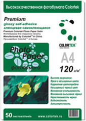 Фотобумага Colortek А4 глянцевая самоклеющая, плотность 120 г/м, количество листов в упаковке: 50