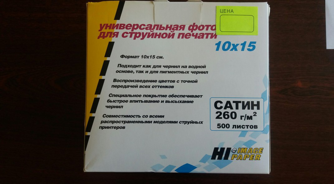 260 Фотобумага сатин одностронняя (Hi-image paper) 10х15, 260 г/м, 500л.