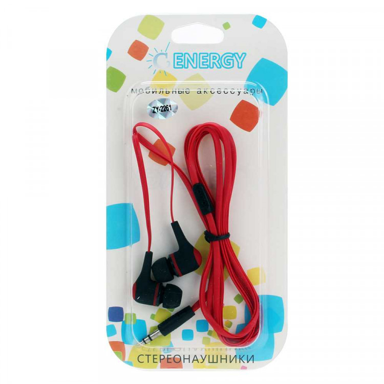 Наушники Energy 2261 внутриканальные,цвет красный в блистере