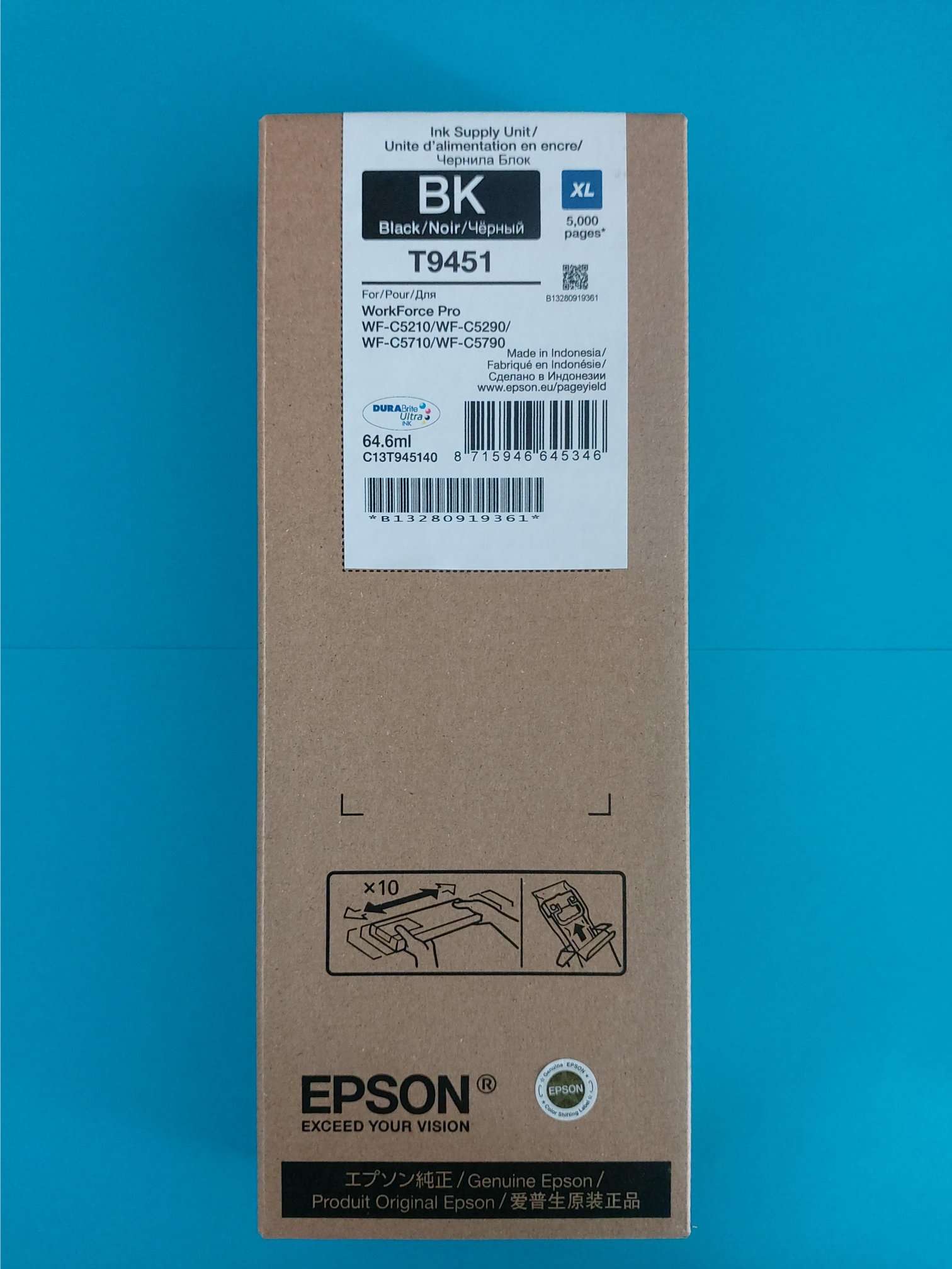 C13T945140 Контейнер Epson T9451 с черными чернилами (WF-C5xxx Series Black XL) для : WorkForce Pro / WF-C 5210 / WF-C 5215 / WF-C 5290 /WF-C 5710 /WF-C 5790 ) 5000 копи