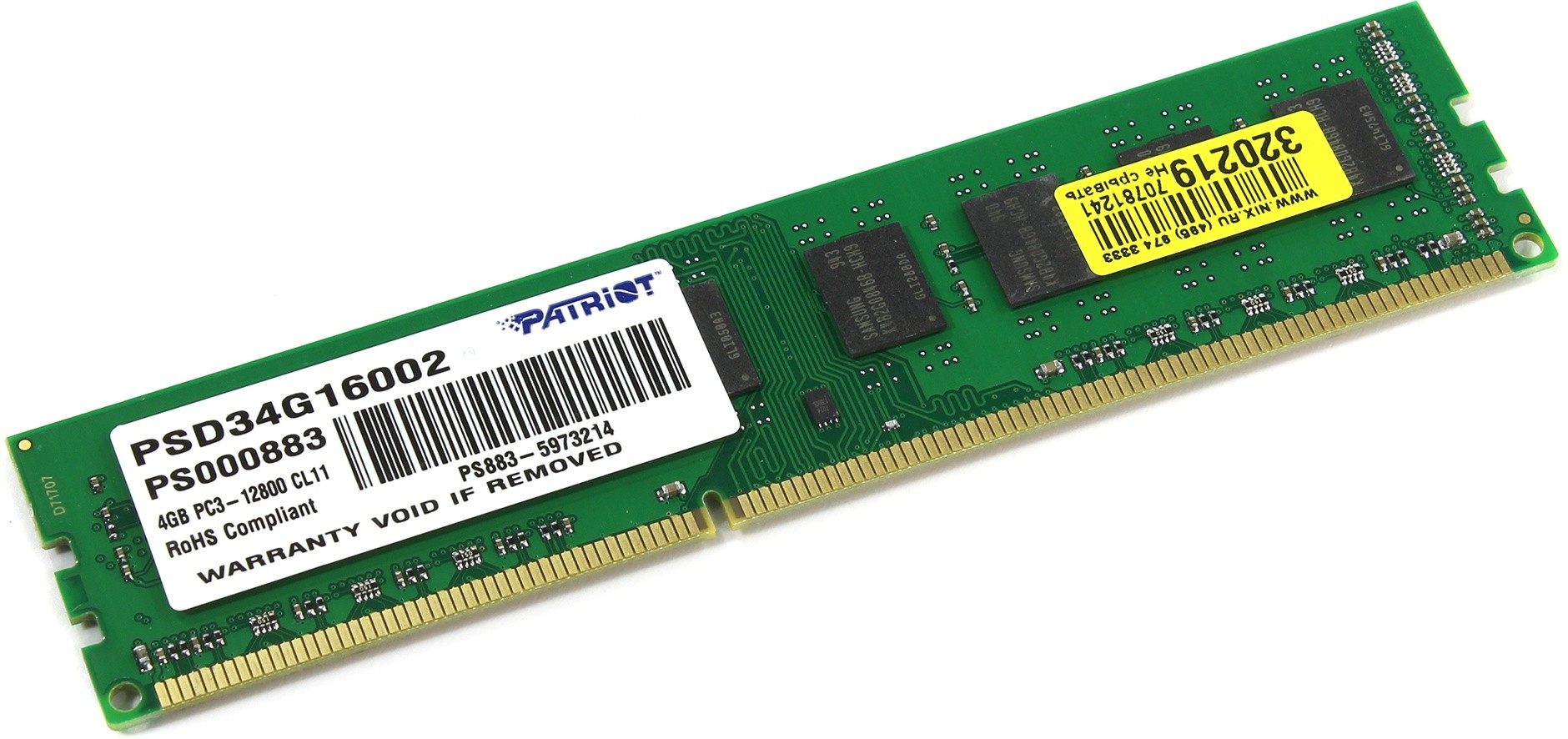 Артикул: PSD34G16002, Модуль памяти Patriot DDR3 4GB 1600MHz