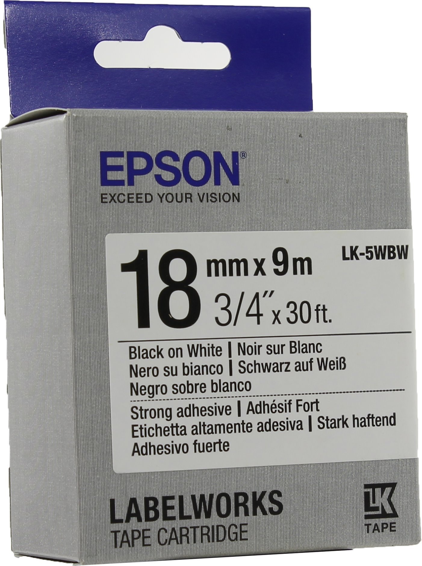 C53S655012, Лента Epson LK5WBW Strng adh Blk/Wht 18/9. Термотрансферная лента для моделей серии LabelWorks LW-400, LW-400VP, LW-700, LW-900P Тип: повышенной адгезии. Цве Образец гарантийного талона Образец документа, подтверждающего оплату Образец копии чека