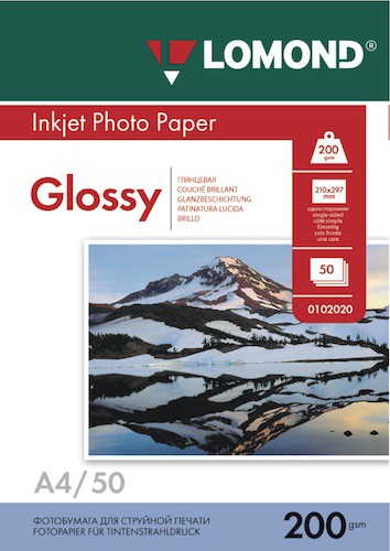 фотобумага Lomond глянец одностороняя 200г/м2 А4 50 лист арт. 0102020