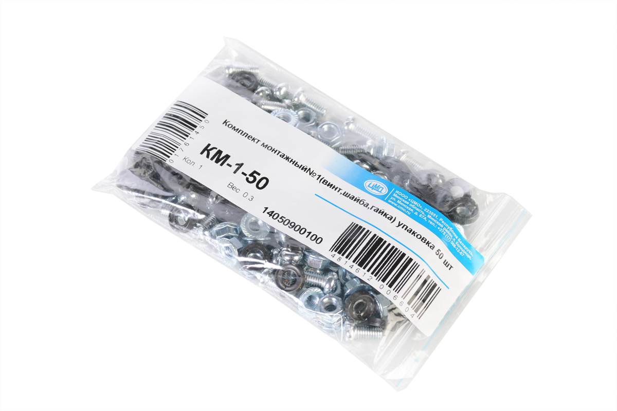 Комплект монтажный № 1 (винт, шайба, гайка ), упаковка 50 шт. Используются для крепления оборудования в шкафы и стойки.