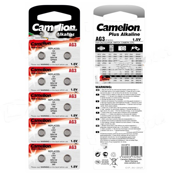 91664 Батарейка Camelion AG3-BP10 100/3600 - 1 шт. (10 шт. в упак.)