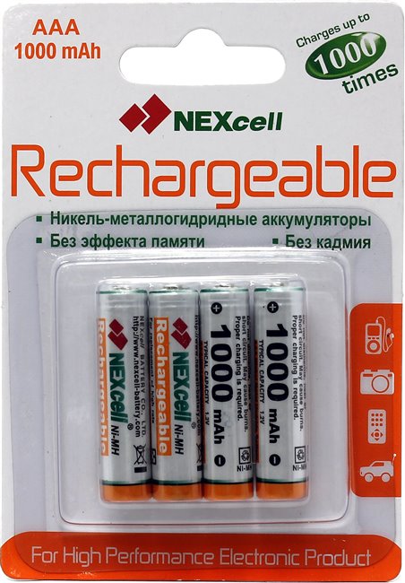 Аккумулятор Nexcell 1000/10 (ААА) 1000 mAh (NiMH). аккумуляторы; не имеют "эффекта памяти"; рабочий диапазон температур: от -10 до 45 градусов. Цена за единицу продукции