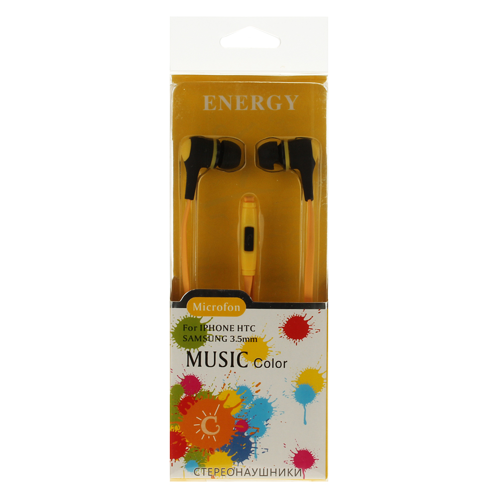 Наушники Energy 2261 внутриканальные, черный, желтый в блистере