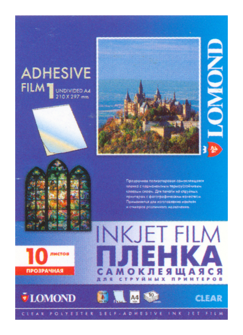Плёнка самоклеящаяся прозрачная Lomond 1*100мкм 10л А4, для стр. 1708411